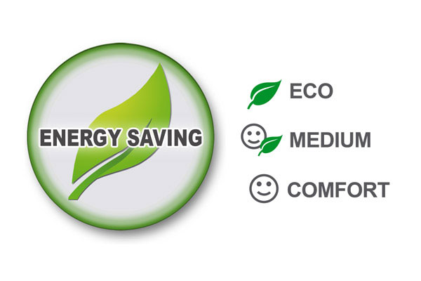 Enerģijas taupīšanas režīmsCLEVER Vadībai ir 3 komforta un energoefektivitātes līmeņi, kurus var regulēt visās manuālās un automātiskās programmās: ECO, MEDIUM un COMFORT.