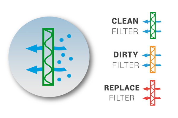 Filtra brīdinājumsNorāda uz filtra maiņas vai tīrīšanas nepieciešamību. Filtra signāls mainīs krāsu kopā ar brīdinājuma ziņu uz ekrāna atkarībā no tā stāvokļa.